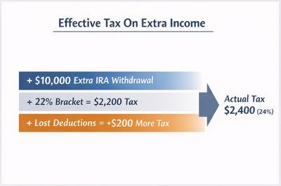You may still see a 12% or 22% bracket on paper. But your next dollar of income may be taxed more like 24%, or even higher.