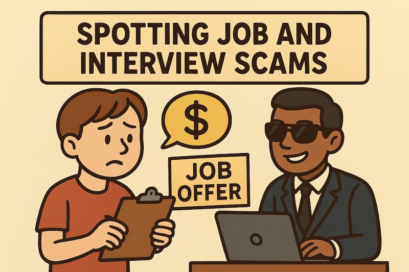 Scammers pose as legitimate employers or recruiters to trick job seekers into sharing personal information, sending money, or performing tasks that ultimately benefit the scammer.